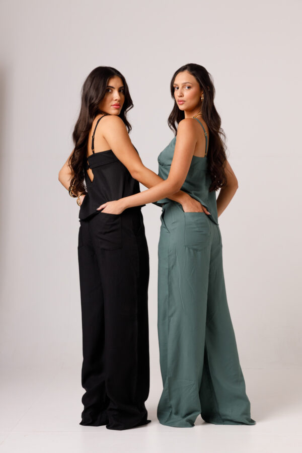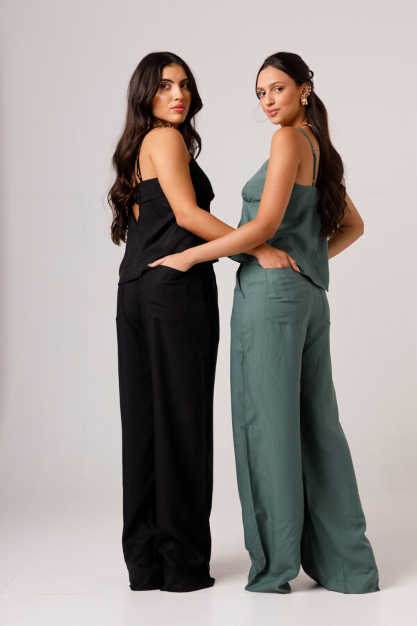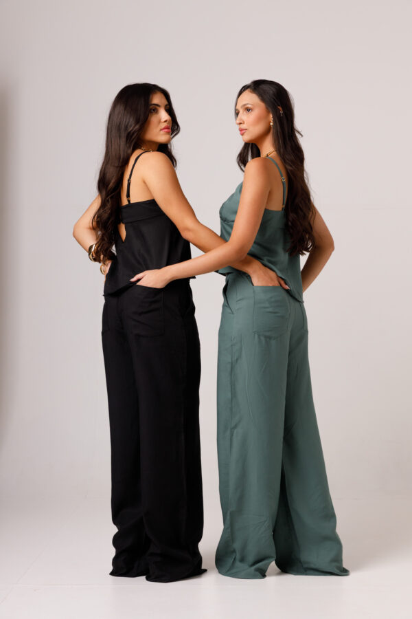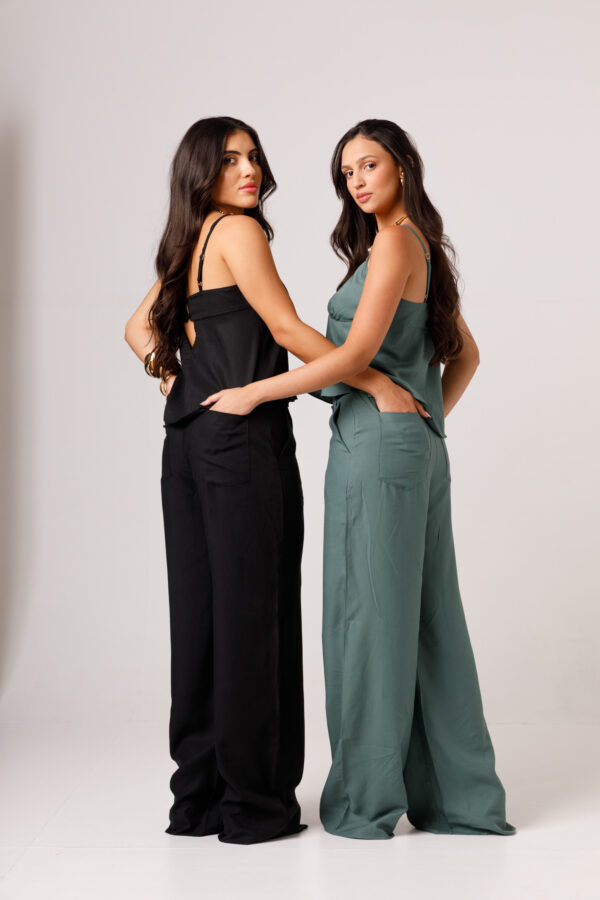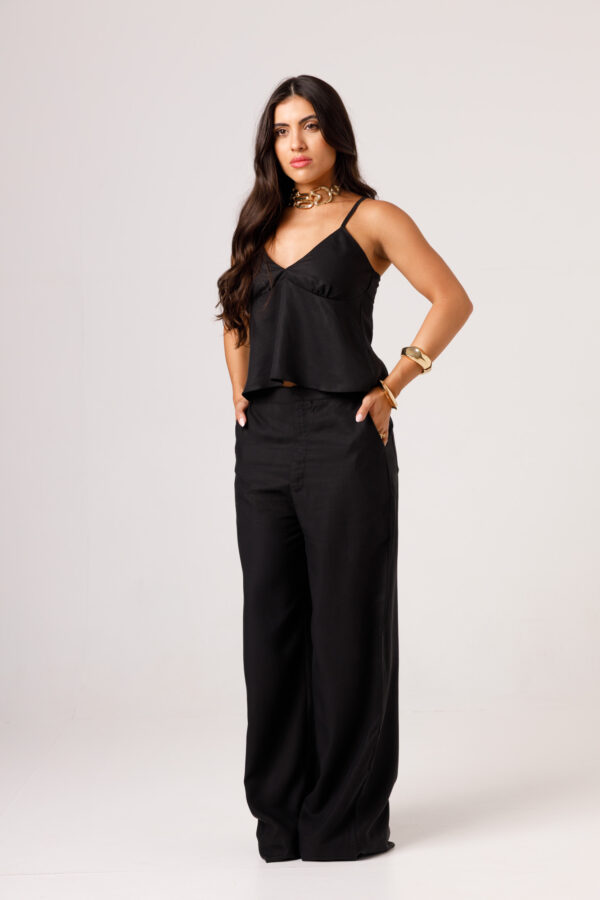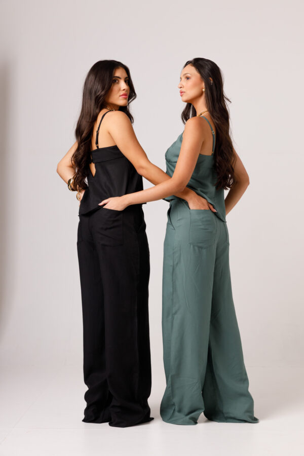 A CALÇA AYLA PRETA apresenta uma proposta elegante e confortável, com cintura marcada, modelagem reta e caimento mais solto ao longo das pernas. Os bolsos laterais complementam a peça com funcionalidade e acabamento visual moderno. É uma calça pensada para compor conjuntos sofisticados ou combinações com tops e camisas, transitando bem entre produções casuais e arrumadas. Disponível nas cores Preta, Verde e Branca.