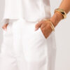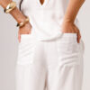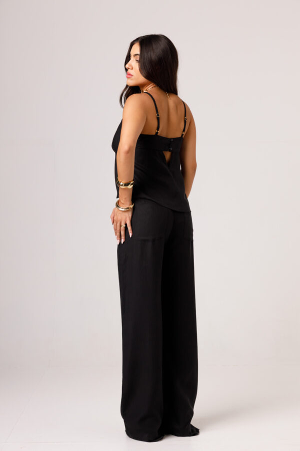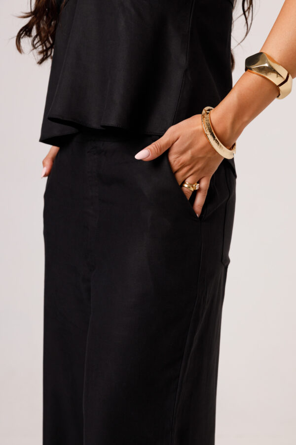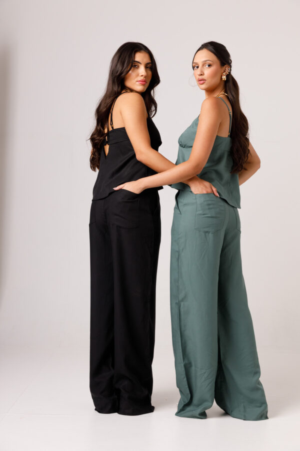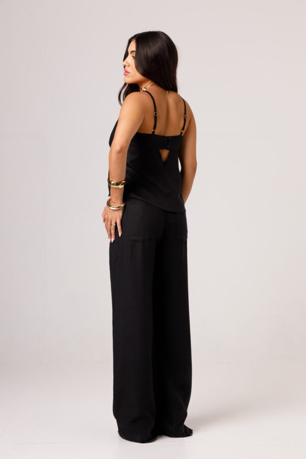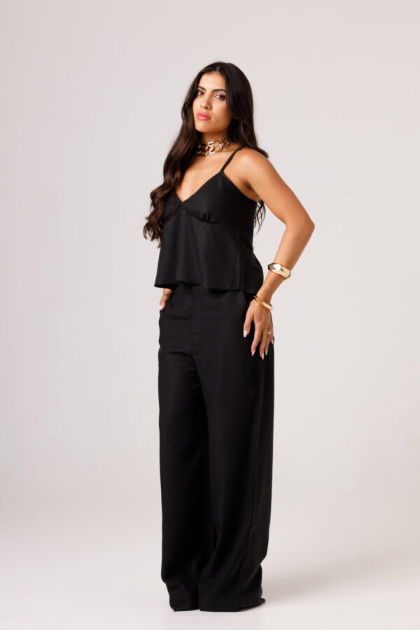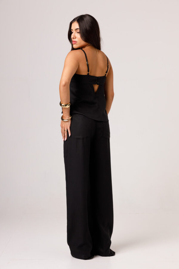 A CALÇA AYLA PRETA apresenta uma proposta elegante e confortável, com cintura marcada, modelagem reta e caimento mais solto ao longo das pernas. Os bolsos laterais complementam a peça com funcionalidade e acabamento visual moderno. É uma calça pensada para compor conjuntos sofisticados ou combinações com tops e camisas, transitando bem entre produções casuais e arrumadas. Disponível nas cores Preta, Verde e Branca.