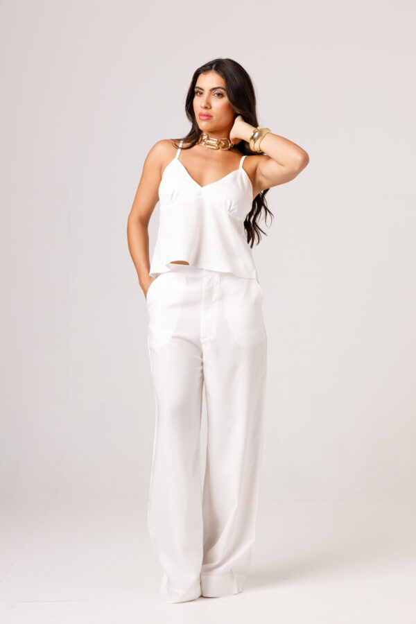 | Combinações sugeridas | Blusa AYLA, camisas, blusas ajustadas, sandálias, salto ou scarpin |