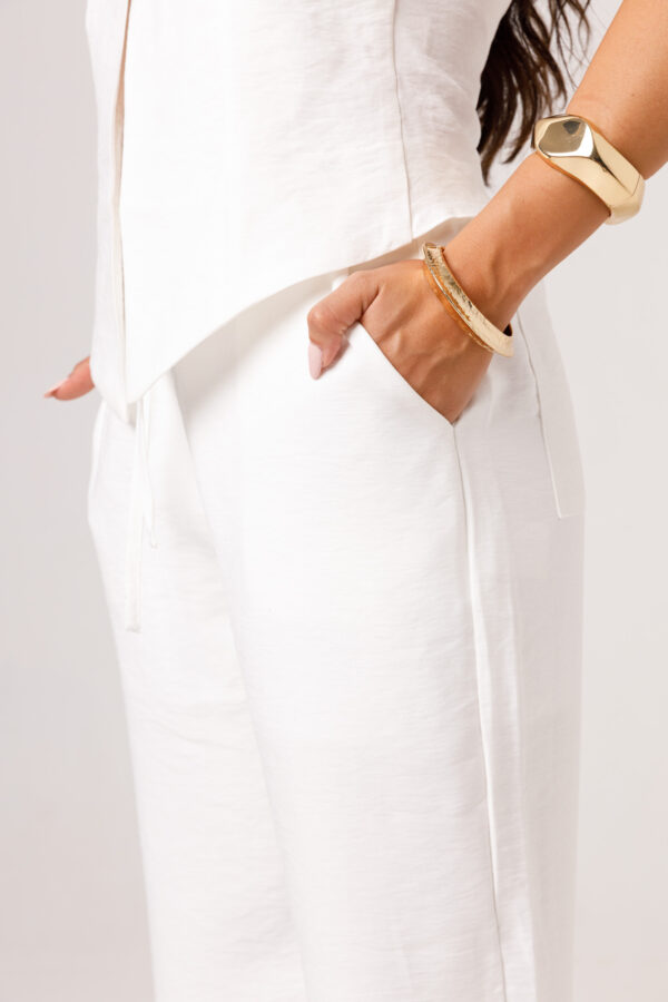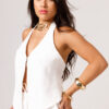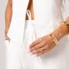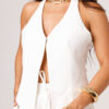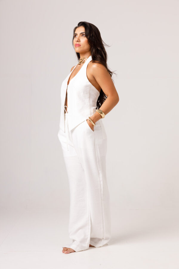 O COLETE OLÍVIA BRANCO se destaca pela frente aberta, modelagem alinhada ao corpo e visual sofisticado. A parte posterior com amarração valoriza o acabamento da peça e adiciona personalidade ao look. É um item ideal para compor conjuntos modernos e elegantes, funcionando bem tanto sozinho quanto coordenado com calças de alfaiataria leve. Disponível nas cores Branco, Rosa e Preto.