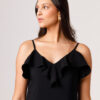 O VESTIDO BABADO PRETO aposta em uma estética leve e elegante, com modelagem longa, alças finas e babado em destaque na parte superior. O visual fica ainda mais feminino com o recorte das costas abertas e o caimento solto ao longo do corpo. É uma peça pensada para compor produções delicadas, frescas e sofisticadas. Disponível nas cores Preto, Branco e Verde.